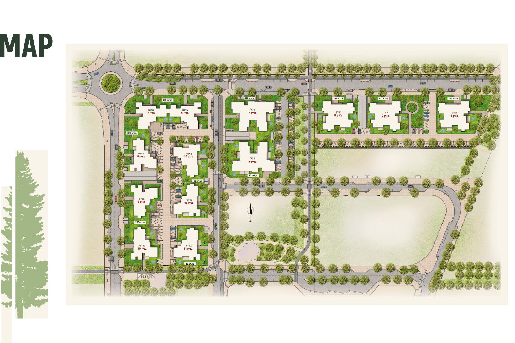 לבחירתכם דירות 3,4,5,6,7 חדרים, פנטהאוזים מפוארים ודירות גן מרשימות בתקן בנייה ירוקה. קומפלקס המגורים צופה לפארק ירוק המהווה ריאה ירוקה לסביבה ותמצאו בו שבילי אופניים, גני שעשועים וחיי קהילה משותפים.